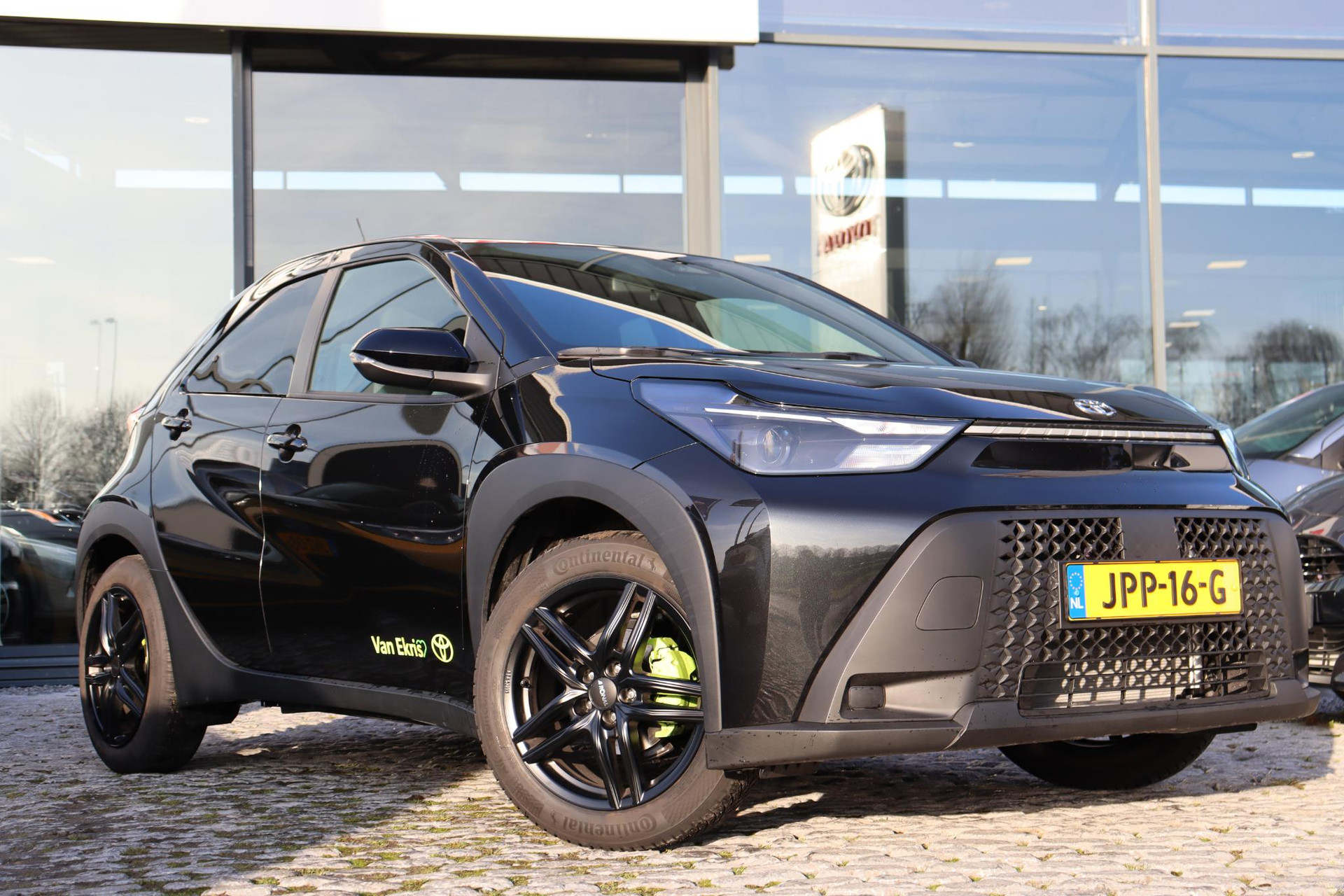 Aygo X Hybride 115 PK Play Green uitvoering. De Aygo met automaat is uitgevoerd met Groene remklauwen, 17 Inch zwarte LM vegen met Allseason banden, Getinte ramen, Draadloos Apple carplay en Android auto, Adaptieve cruise controle, Safety sense, parkeercamera en meer.