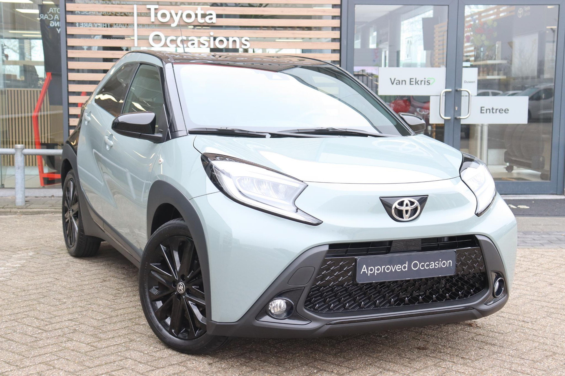 Elegante Ayo-X Pulse in de kleur Terragon met zwart dak/achterzijde. Deze Aygo-X is voorzien van Climate control, parkeercamera, getint glas achter, adaptieve cruise control en 18 ich hoogglans zwarte lichtmetalen velgen. U bent welkom voor een proefrit!