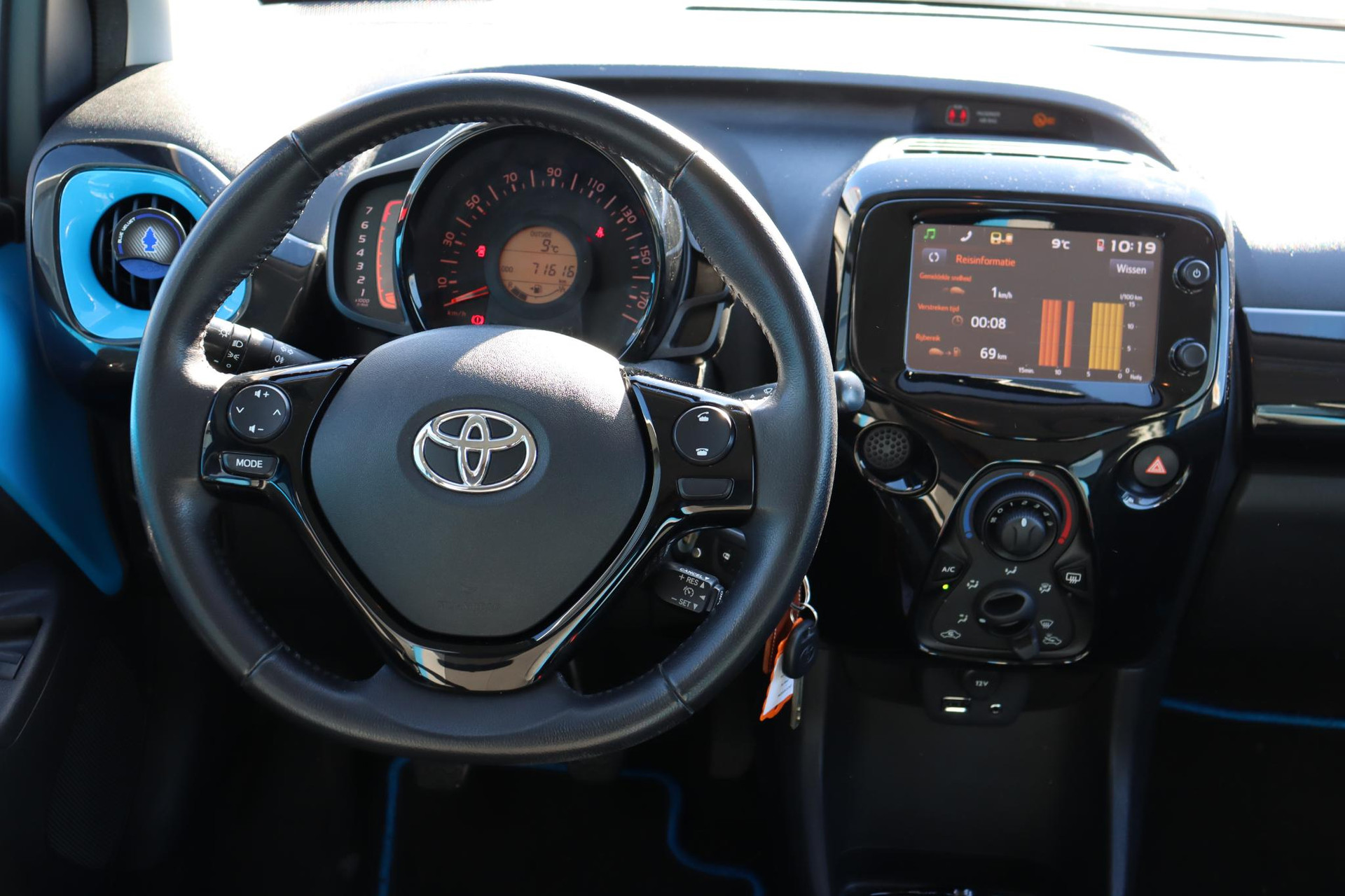Bij ons op voorraad! Deze prachtige Aygo 1.0 VVT-i X-Cite! Deze Aygo is geleverd in de prachtige kleur Cyan Splash Blue Metallic. Deze Cyan Aygo is nieuw door ons geleverd en onderhouden geweest! Daarbij is deze aygo ook leuk uitgerust. Zo heeft hij een parkeercamera, In hoogte verstelbare bestuurdersstoel, Airco, Speedlimiter en nog veel meer!