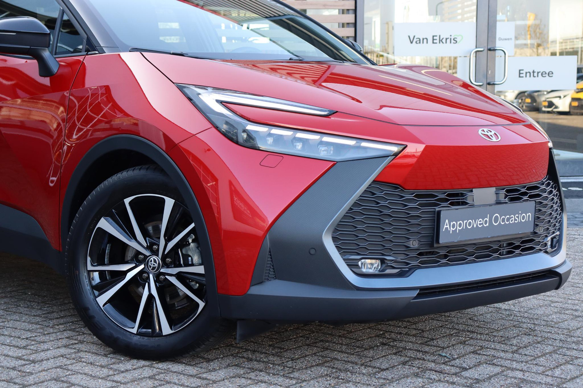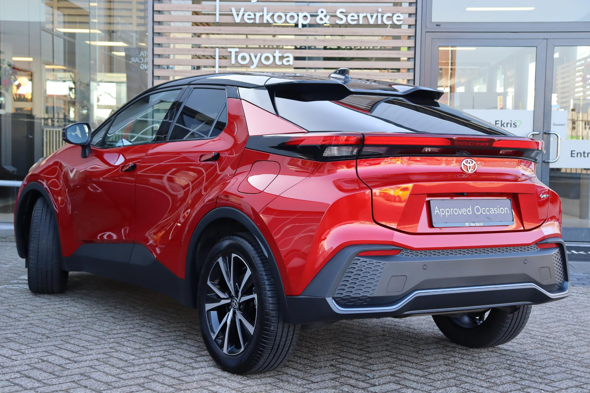 Jonge CHR 1.8 Hybrid 140 PK First Editon Limited in de kleur Emotional Red met zwarte bovenzijde. Voorzien van onder andere Blind Spot Monitor, stuur- en stoelverwarming, volledig LED verlichting, parkeersensoren voor en achter, elektrische achterklep, draadloze telefoonlader, Apple Carplay/Android Auto, Adaptive Cruise Control, Keyless satart/Entry, navigatie, regensensor, 360 graden camera, voorruitverwarming (ruitenwissergedeelte), koplampsproeiers en meer! U bent welkom voor een proefrit met deze C-HR!