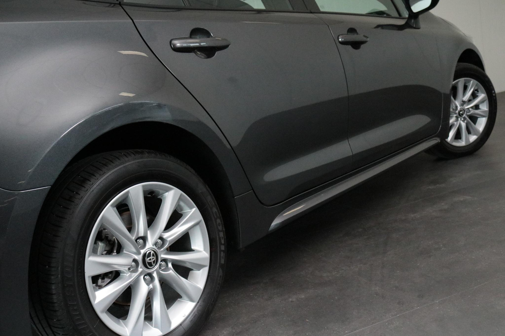 Mooie jong gebruikte Toyota Corolla Touring Sports Hybrid 140 Dynamic in de kleur Ash Grey metallic. De Corolla is royaal uitgevoerd en is onder andere voorzien van: stuur en stoelverwarming, voorruitverwarming (ruitenwissergedeelte), parkeersensoren voor en achter, keyless entry, koplampsproeiers, volledig digitaal display, draadloze telefoonlader, android auto, apple carplay, parkeercamera en meer!!