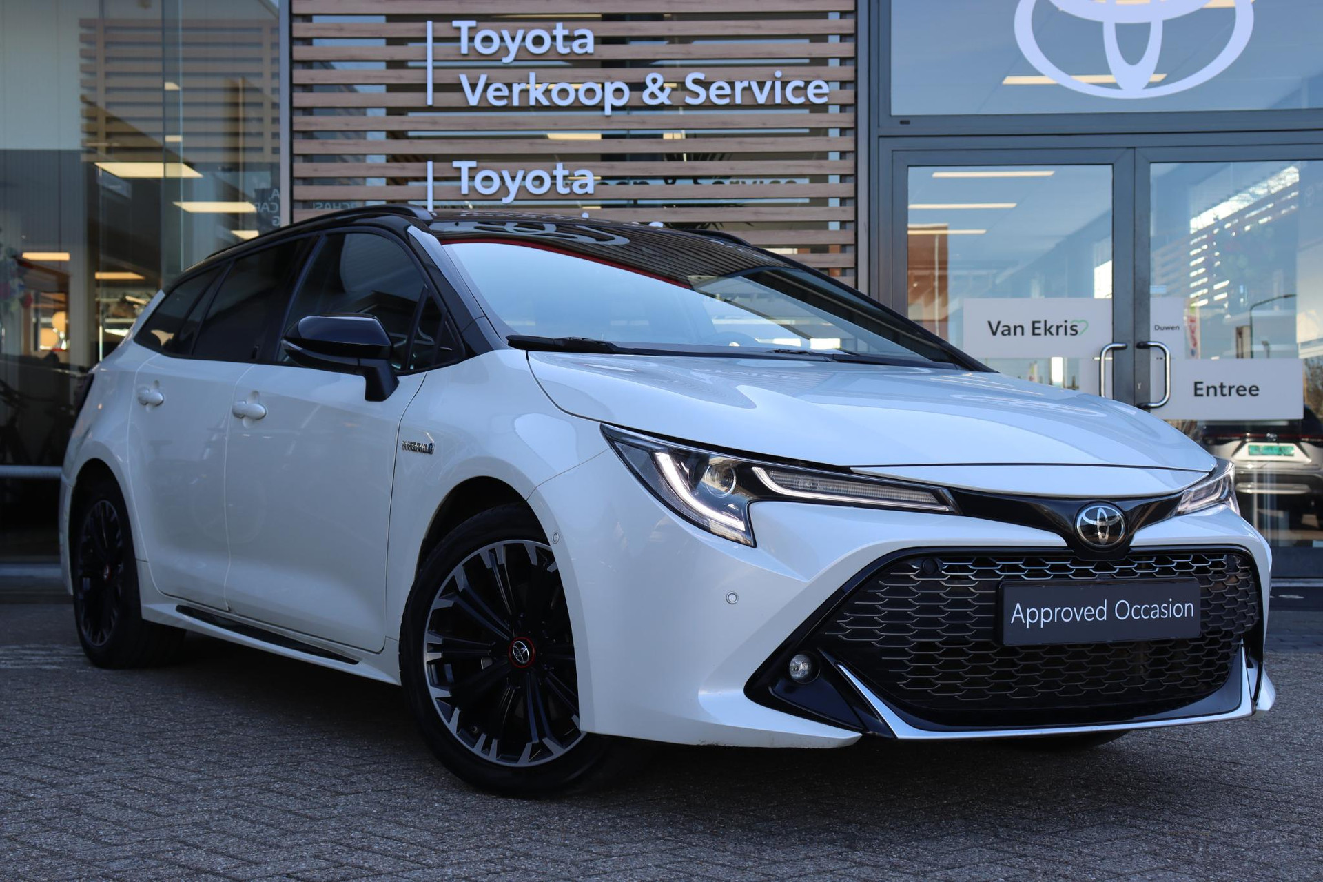 Deze Toyota Corolla Touring Sports 2.0 Hybrid in de keur Pearl White/Zwart dak. De Corolla Touring Sport is uitgerust met onder andere Apple carplay/Android Auto, DAB radio, Adaptive Cruise Control, Keyless Start/Entry, LED verlichting, parkeersensoren voor en achter, sportstoelen, en nog veel meer!
