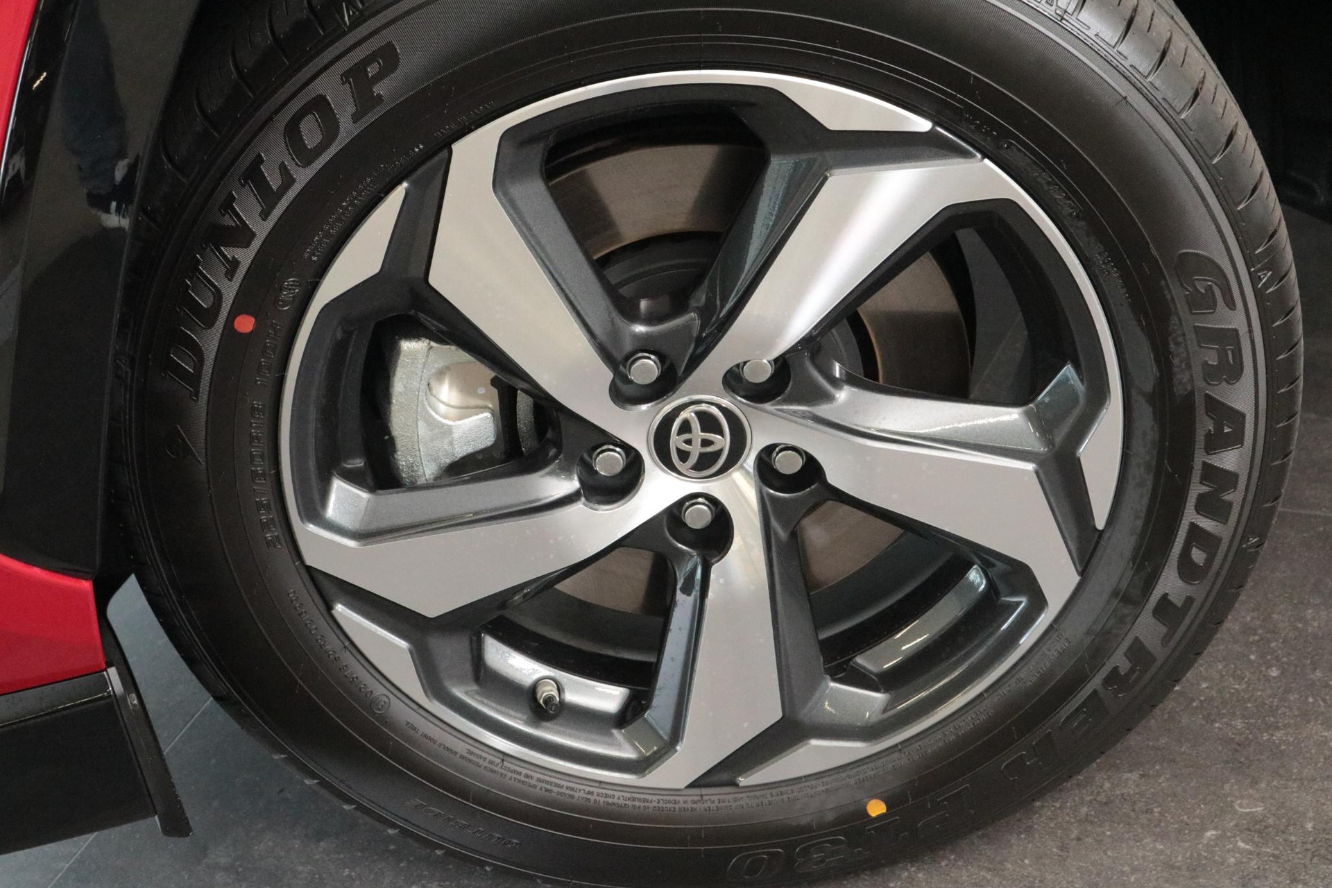 - Donkergrijze 18” gepolijste lichtmetalen velgen