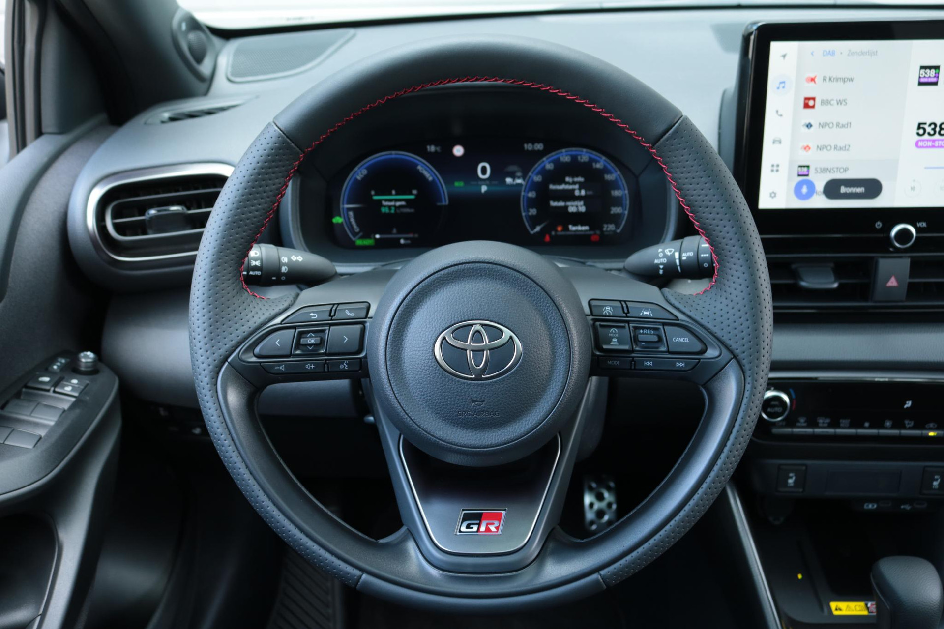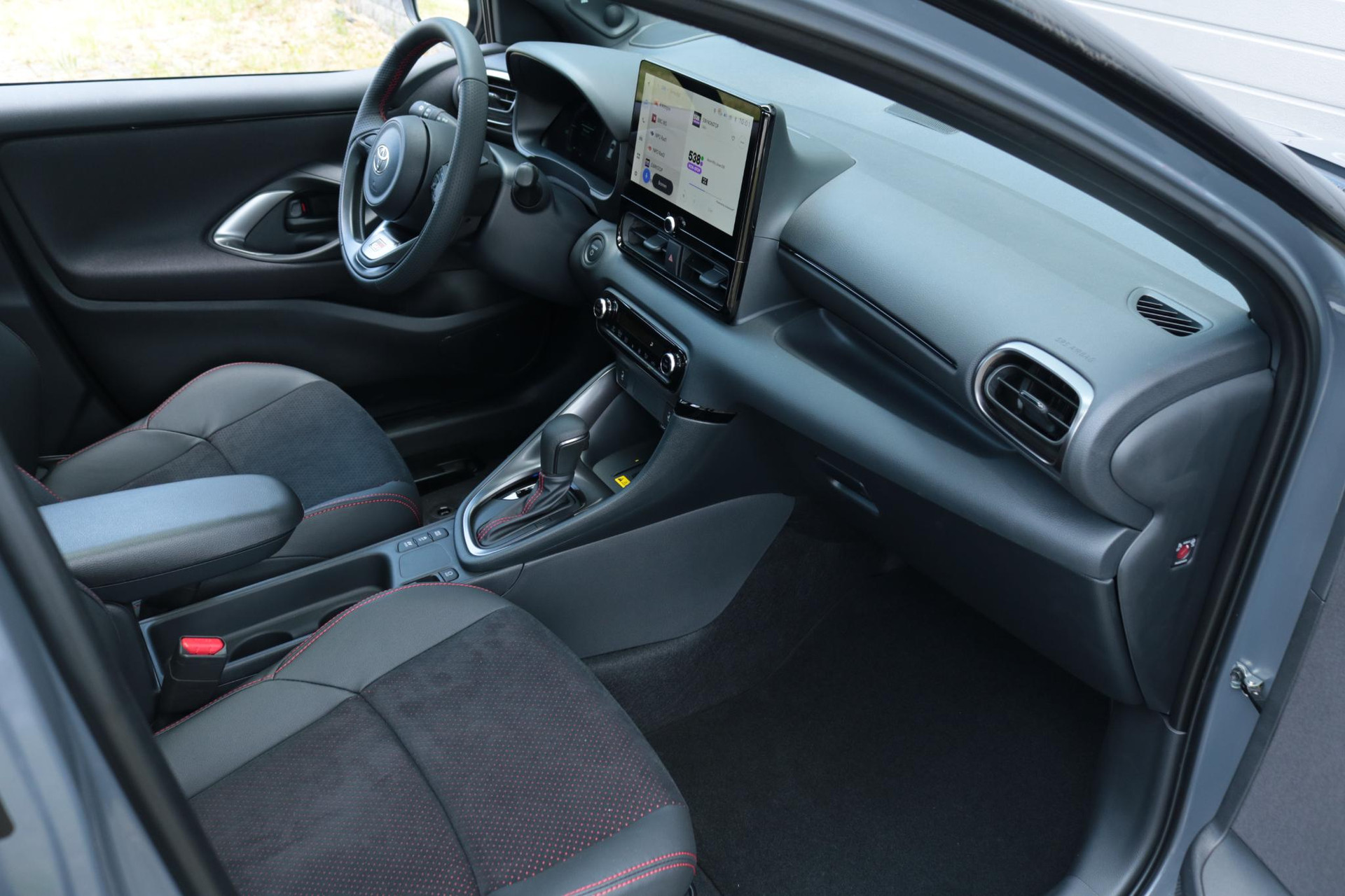 Deze super gave Toyota Yaris Hybrid 130 in de sportieve GR-Sport uitvoering. Door het mooie contrast tussen de kleur Storm Grey + Solid Black ziet de Yaris er erg strak uit! In combinatie met het GR-Sport Plus Pack zit de Yaris vol met leuke opties zoals: Panorama dak, Stoelverwarming, Stuurverwarming, Draadloos Apple Carplay & Android Auto, Parkeersensoren met remfunctie, Blind Spot Monitor, Automatisch inklapbare buitenspiegels,18 inch lichtmetalen velgen, Digitaal instrumentenpaneel, Half lederen bekleding, Donkere hemelbekleding en nog veel meer!