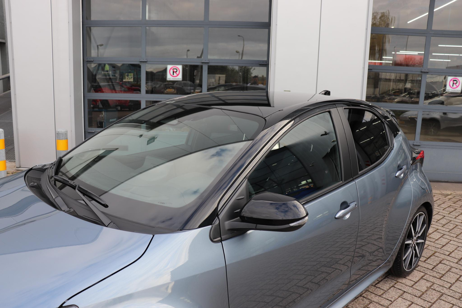 Deze super gave Toyota Yaris Hybrid 130 in de sportieve GR-Sport uitvoering. Door het mooie contrast tussen de kleur Celeste grey metallic en het zwarte dak ziet de Yaris er erg strak uit! In combinatie met het GR-Sport Plus Pack zit de Yaris vol met leuke opties zoals: Panorama dak, Stoelverwarming, Stuurverwarming, Draadloos Apple Carplay & Android Auto, Parkeersensoren met remfunctie, Blind Spot Monitor, Automatisch inklapbare buitenspiegels, Op afstand verwarmen en verkoelen met de Toyota app, 18 inch lichtmetalen velgen, Digitaal instrumentenpaneel, Half lederen bekleding, Donkere hemelbekleding en nog veel meer!
